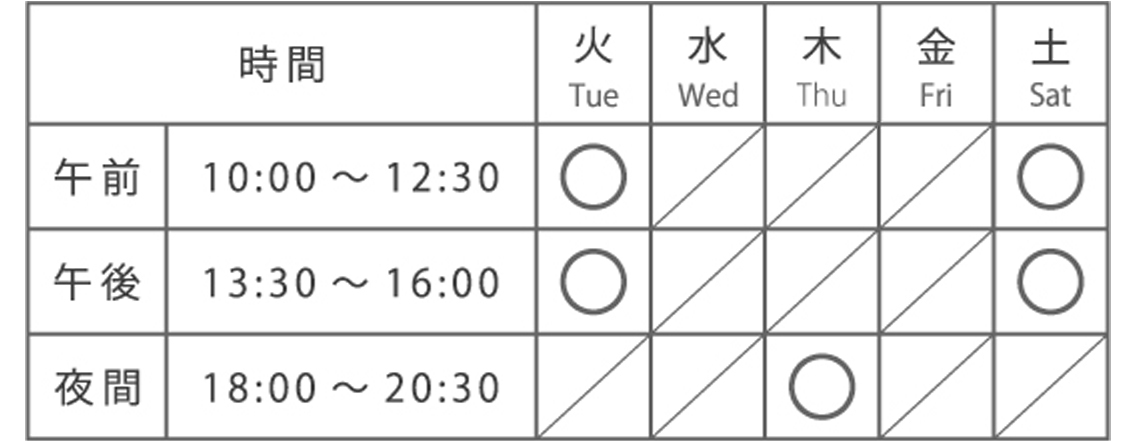 授業曜日と時間(3科共通)
